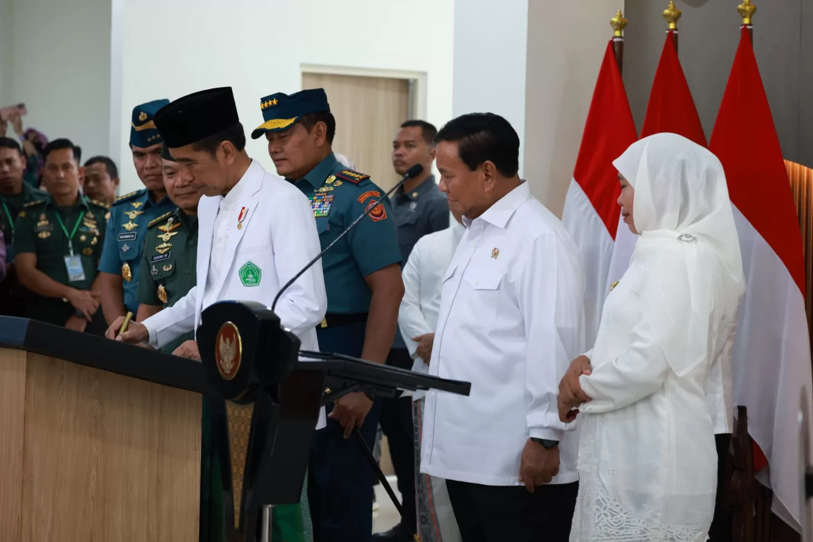 Presiden RI Joko Widodo didampingi Menteri Pertahanan RI Prabowo Subianto meresmikan 2 Rumah Sakit (RS) TNI di RS. Tk. III Brawijaya dan RSAL Tk. II dr. Soekantyo Jahja Puspenerbal Surabaya, Jawa Timur (22/10).