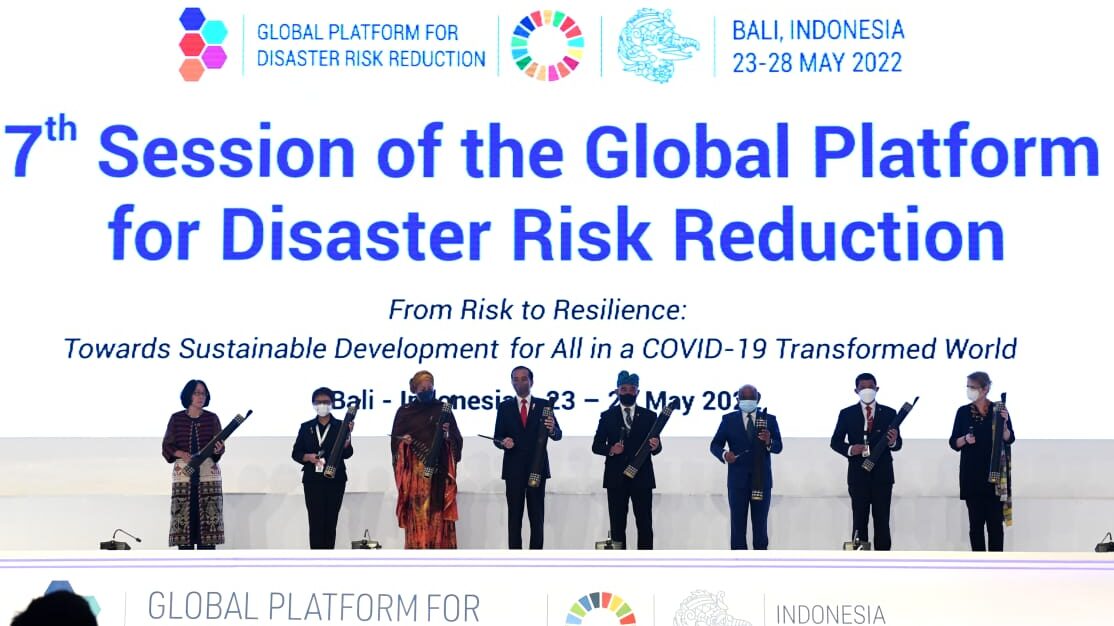 Presiden Joko Widodo secara resmi membuka The 7th Global Platform for Disaster Risk Reduction (GPDRR) 2022 yang digelar di Bali Nusa Dua Convention Center (BNDCC), Kabupaten Badung, Provinsi Bali, pada Rabu, 25 Mei 2022. Dalam sambutannya, Presiden menegaskan bahwa Indonesia berkomitmen dan bersungguh-sungguh dalam upaya pengurangan risiko bencana.
