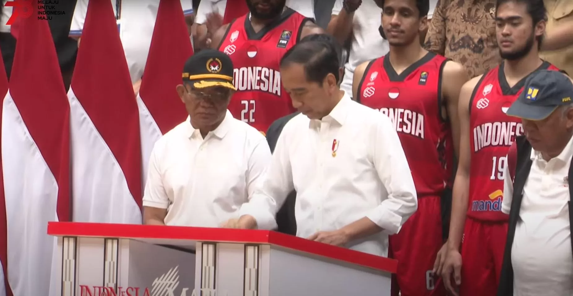 Presiden RI Joko Widodo (Jokowi) meresmikan gedung olahraga Indonesia Arena, Senin (07/08/2023). Stadion yang terletak di kawasan Gelora Bung Karno (GBK) ini akan menjadi salah satu venue Piala Dunia Basket FIBA 2023 yang akan berlangsung akhir Agustus hingga September mendatang.