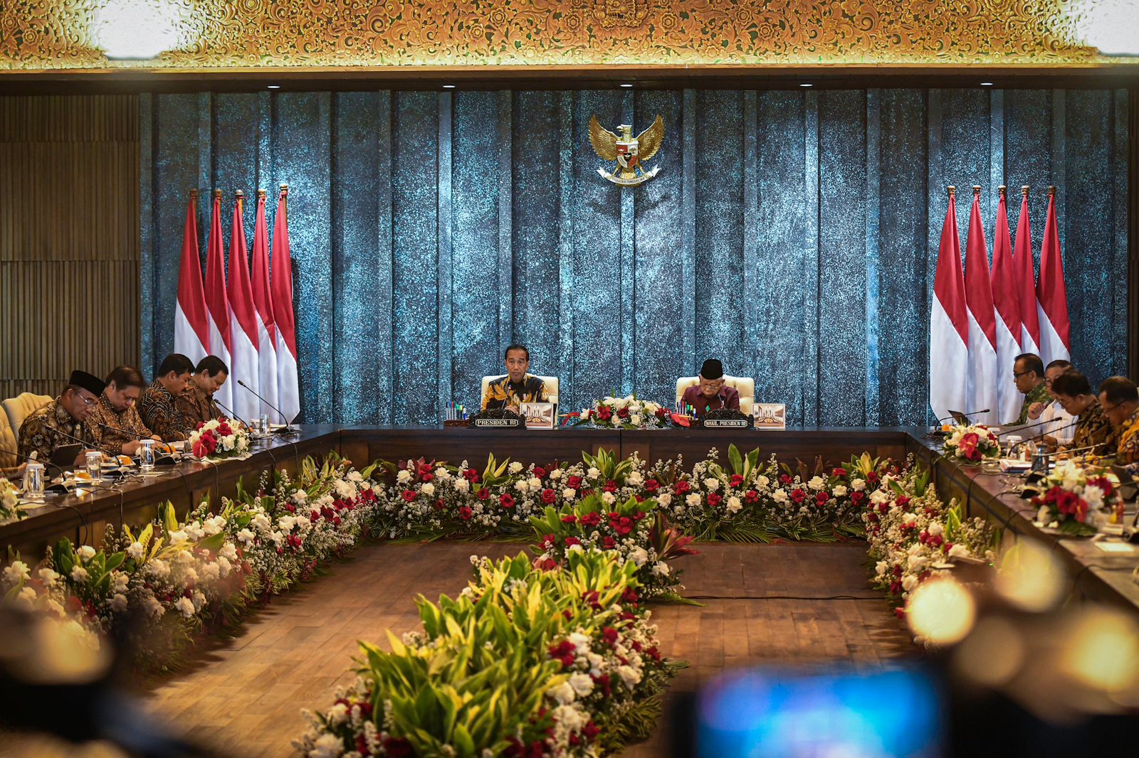 Presiden Joko Widodo (Jokowi) dan Wakil Presiden Ma’ruf Amin memimpin Sidang Kabinet Paripurna terakhir dari Kabinet Indonesia Maju di Istana Garuda, Ibu Kota Nusantara (IKN), Provinsi Kalimantan Timur, pada Jumat (13/09/2024). Dalam sidang tersebut, Presiden menyampaikan apresiasi sekaligus instruksi terakhir menjelang berakhirnya masa pemerintahan pada 20 Oktober 2024.