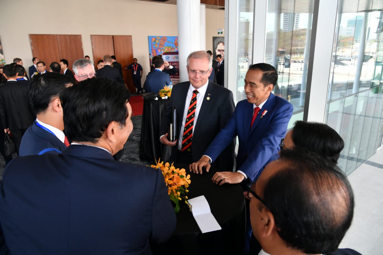 Hari terakhir Konferensi Tingkat Tinggi (KTT) Asia-Pacific Economic Cooperation (APEC) 2018, Presiden Joko Widodo (Jokowi) menghadiri Leaders Retreat dan Working Lunch dalam rangkaian KTT APEC 2018 di Papua Nugini.