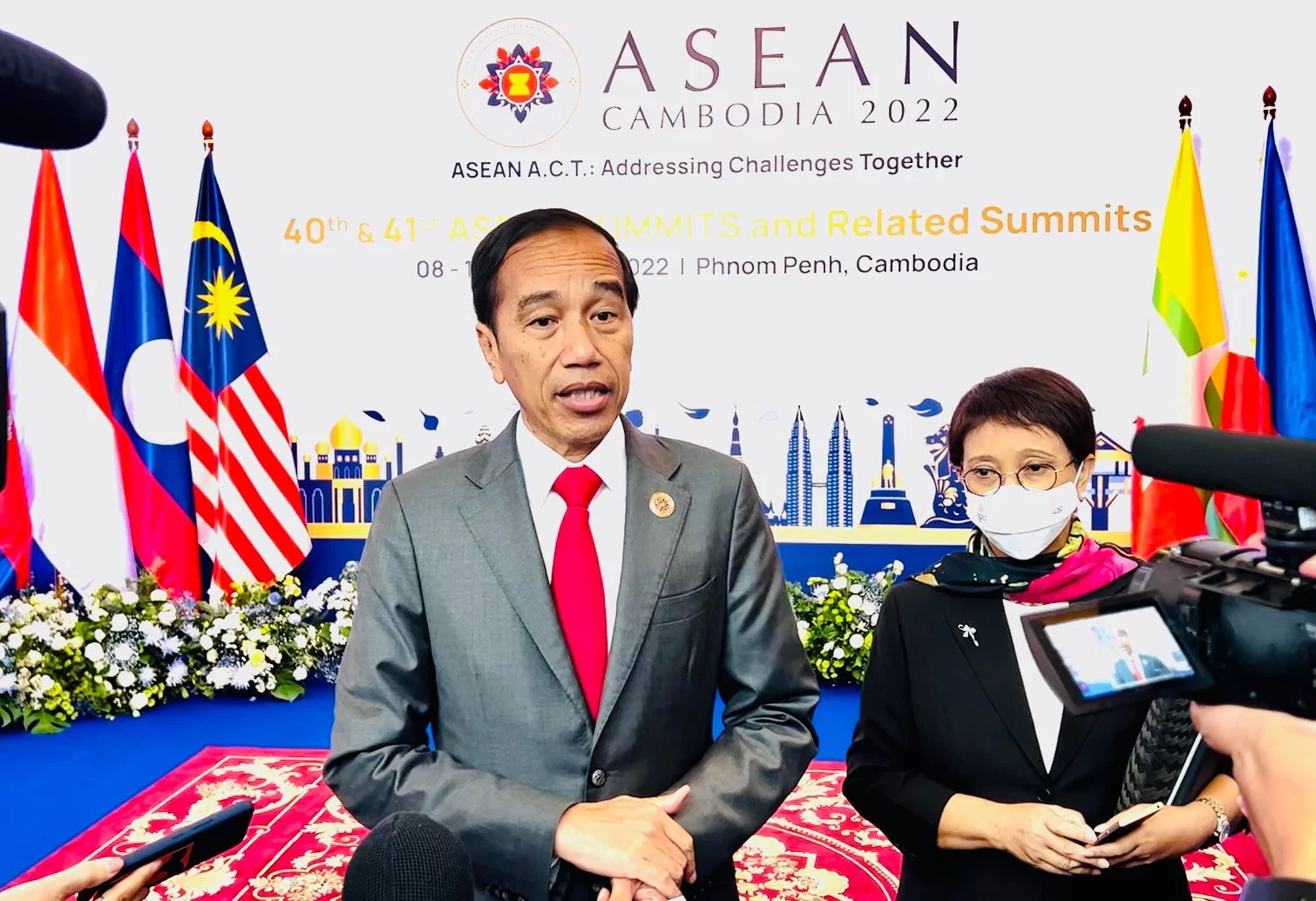 Presiden Jokowi didampingi Menlu Retno Marsudi memberikan keterangan pers kepada awak media di sela penyelenggaraan KTT ASEAN Kamboja, Jumat (11/11/2022). (Foto: BPMI Setpres)
