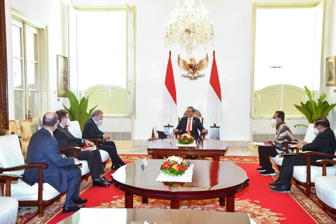 Presiden RI Joko Widodo (Jokowi) menerima kunjungan Presiden Boeing International Michael Arthur beserta delegasi di Istana Merdeka, Jakarta, pada Rabu (02/11/2022). Menteri Perhubungan (Menhub) Budi Karya Sumadi yang turut mendampingi Presiden dalam pertemuan tersebut menyampaikan bahwa Boeing merupakan mitra strategis dari Indonesia dalam industri aviasi.