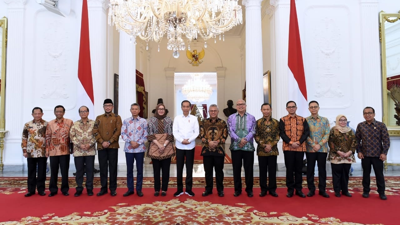Presiden Joko Widodo menerima pimpinan Komisi Pemilihan Umum (KPU) di Istana Merdeka, Jakarta, Senin, 11 November 2019. Para pimpinan KPU tersebut dipimpin oleh Ketua KPU Arief Budiman.