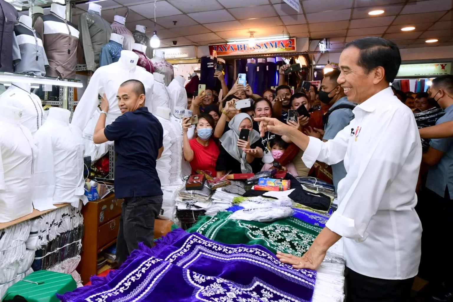 Presiden RI Joko Widodo (Jokowi) mengunjungi dua pusat perbelanjaan yang ada di Jakarta, pada Kamis (04/05/2023). Kedua pusat perbelanjaan yang dikunjungi Kepala Negara adalah Pasar Tanah Abang dan Sarinah.