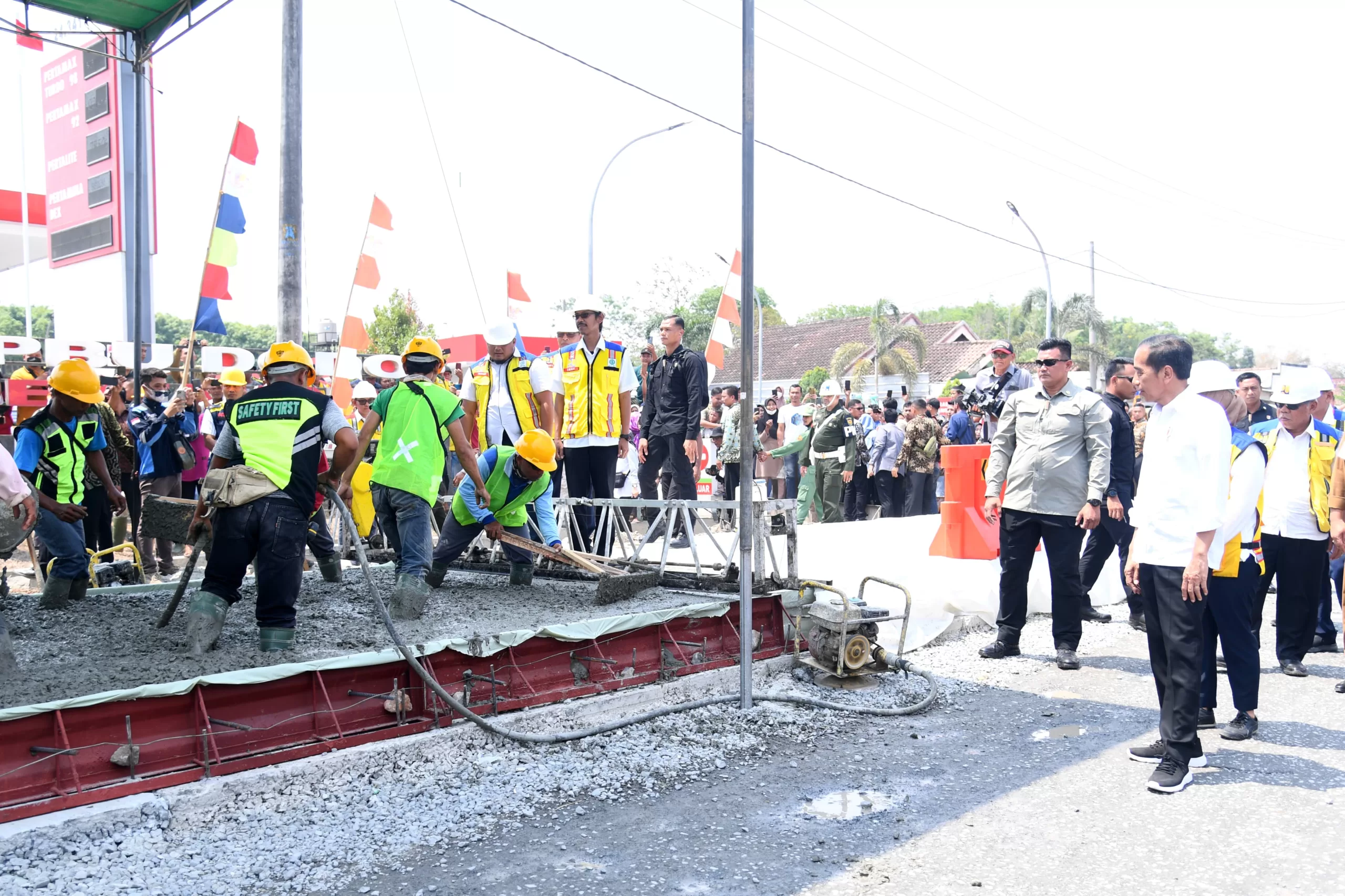 Presiden menjelaskan bahwa rekonstruksi jalan di Provinsi Lampung menggunakan jenis pengerasan beton (rigid pavement) dengan ketebalan 30 sentimeter. Proyek pekerjaan tersebut merupakan kerja sama dari pemerintah pusat melalui Kementerian Pekerjaan Umum dan Perumahan Rakyat (PUPR) dengan pemerintah Provinsi Lampung.