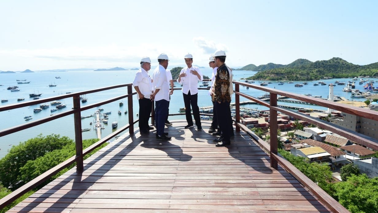 Presiden Joko Widodo meninjau perkembangan penataan kawasan Puncak Waringin di Labuan Bajo, Kabupaten Manggarai Barat, Nusa Tenggara Timur (NTT), pada Senin, 20 Januari 2020. Kawasan di Labuan Bajo ini menjadi salah satu destinasi wisata prioritas yang disiapkan pemerintah dan sedang dikembangkan menjadi sebuah kawasan industri pariwisata.