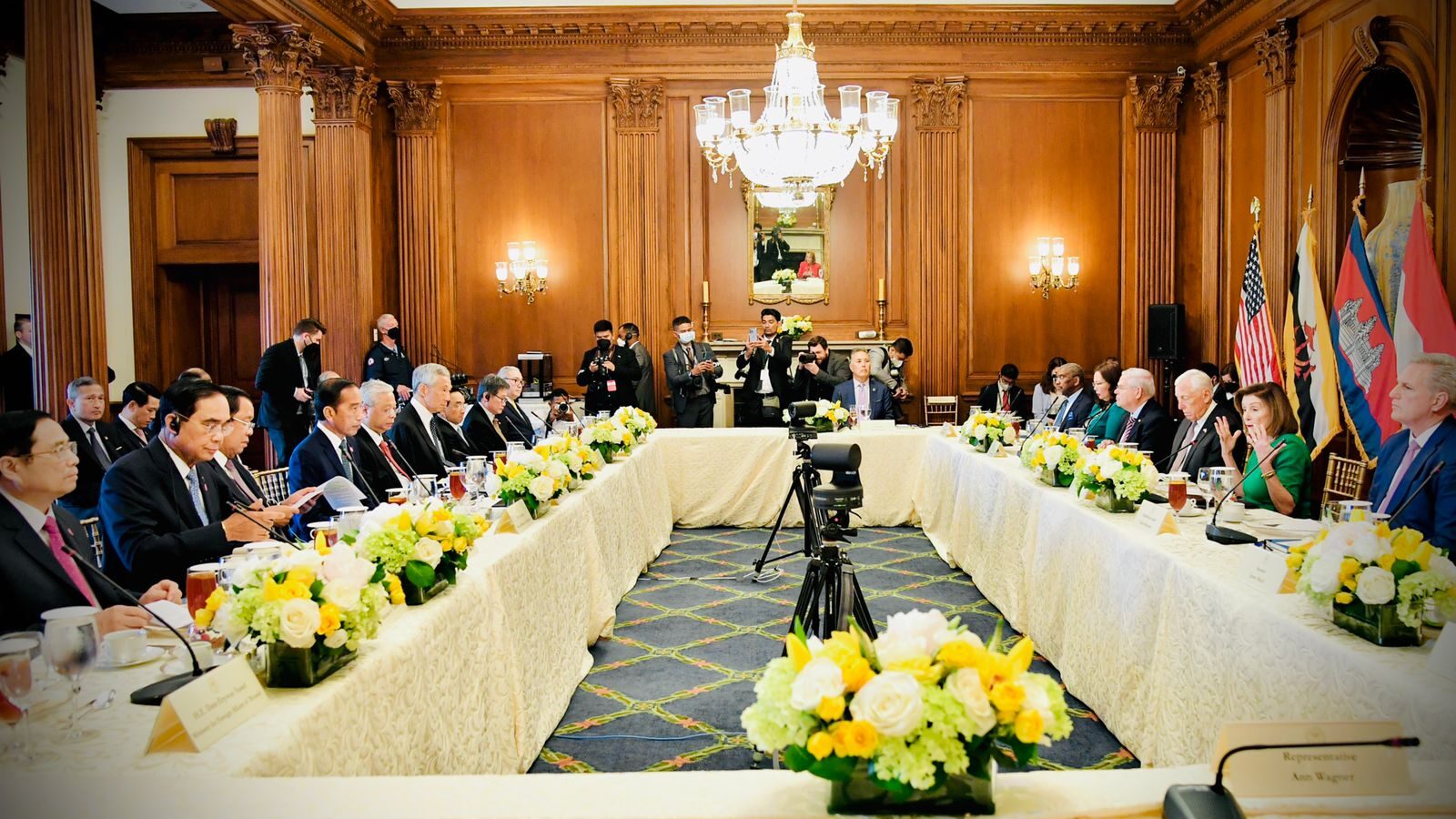 “Kita juga ingin Amerika menjadi mitra strategis ASEAN dalam kerja sama yang inklusif dan saling menguntungkan. Saya yakin kita bersama dapat menyaksikan kemakmuran kawasan Indo-Pasifik,” ujar Presiden Jokowi.