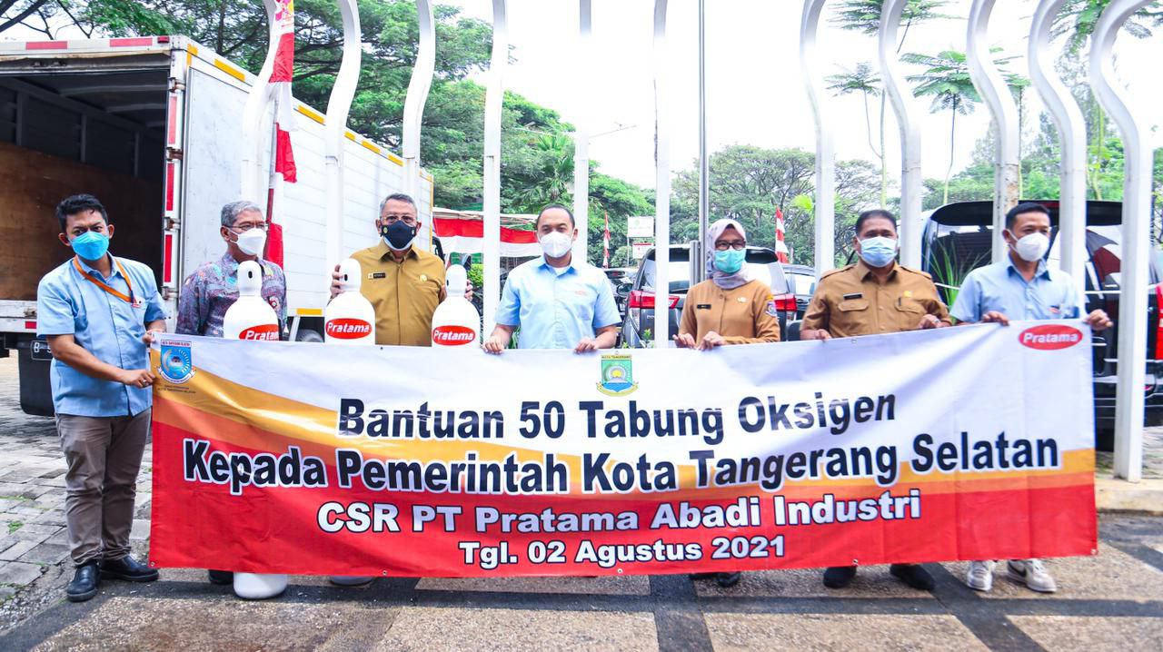 Pemerintah Kota Tangerang Selatan (Tangsel) mendapatkan sumbangan sebanyak 50 tabung oksigen dari PT Pratama Abadi Industri. Bantuan ini dimanfaatkan untuk menangani pandemi Covid-19 di Kota Tangsel. Pemberian donasi tabung oksigen tersebut berlangsung di halaman kantor Dinas Kesehatan Kota Tangsel, Senin (2/8). PT Pratama Abadi Industri adalah salah satu produsen sepatu yang berlokasi di Serpong Utara, perusahaan ini didirikan pada tahun 1989.