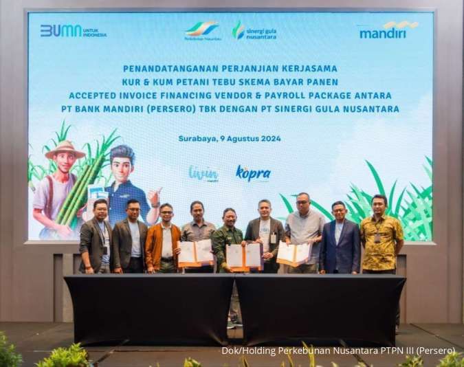 Holding Perkebunan Nusantara melalui anak usahanya, PT Sinergi Gula Nusantara (SGN), menjalin kemitraan strategis dengan PT Bank Mandiri (Persero) Tbk yang ditandai dengan penandatanganan perjanjian kerja sama di Surabaya, pada Jumat (09/08/2024).