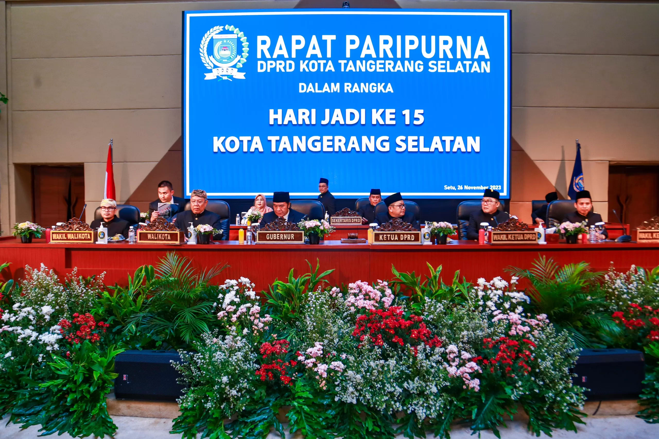 Peringatan Hari Ulang Tahun (HUT) ke-15 Kota Tangerang Selatan ditandai dengan terselenggaranya Rapat Paripurna di Gedung DPRD Kota Tangerang Selatan, pada Minggu (26/11).