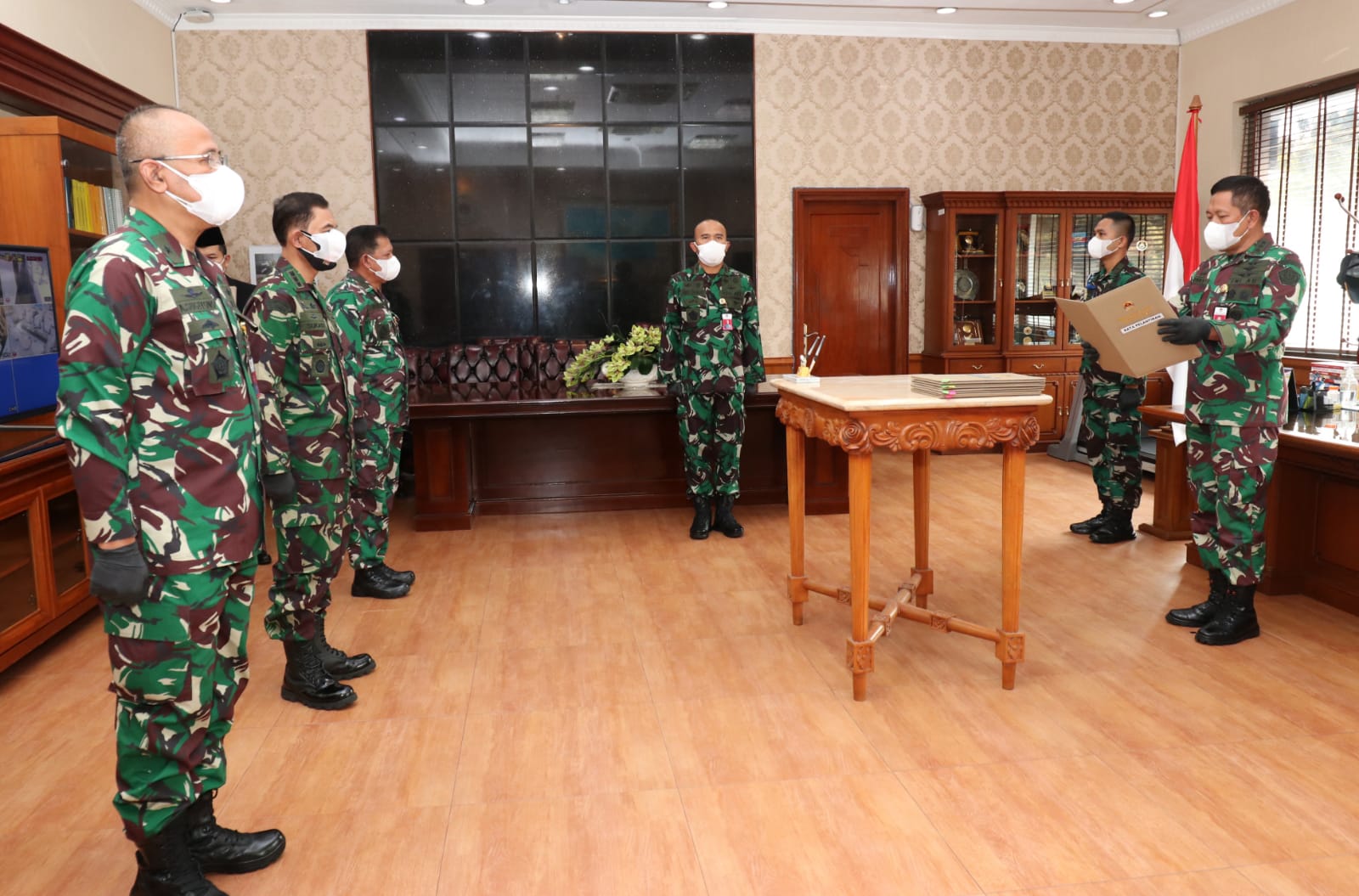 Turut hadir dalam Pelantikan dan Sertijab tersebut, Karopeg Setjen Kemhan Brigjen TNI Aufit Chaniago, S.I.P., tersebut digelar secara sederhana di Ruang Kerja Sekjen Kemhan, yang ditandai dengan penandatanganan Berita Acara Serah Terima Jabatan dengan tetap memperhatikan ketentuan sesuai dengan Protokol Kesehatan ditengah wabah Covid-19. (rls)