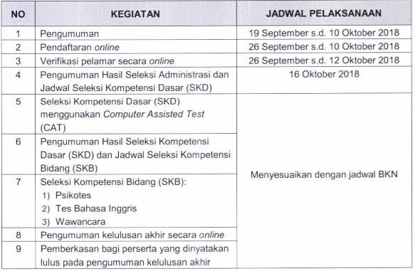 Adapun tahapan seleksi dilaksanakan sesuai tabel di atas.