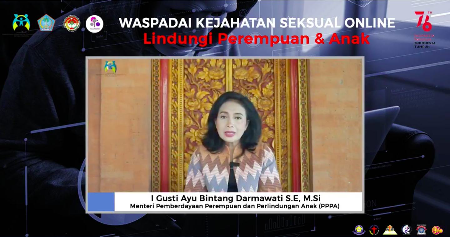 Menteri Pemberdayaan Perempuan dan Perlindungan Anak, Bintang Puspayoga mengakui jika hingga saat ini masih terjadi ketimpangan akses yang mengakibatkan perempuan dan anak menjadi sangat rentan terhadap kekerasan, diskriminasi, dan berbagai perlakuan salah lainnya. Oleh karena itu, Menteri Bintang mengjak semua pihak meningkatkan sinergisitas untuk menghapus kejahatan online pada perempuan dan anak.