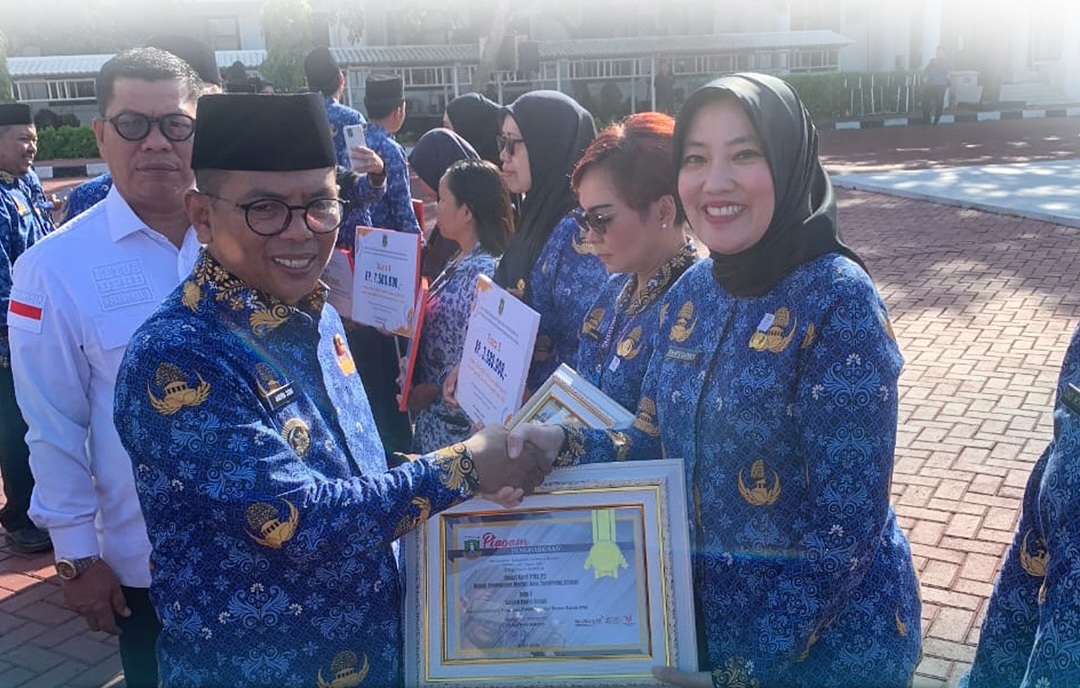 Penghargaan diberikan oleh Andra Soni dan diterima langsung oleh Sekretaris Bapenda Tangsel, Rahayu Sayekti bersamaan dengan upacara peringatan Hari Ulang Tahun (HUT) ke-54 KORPRI.
