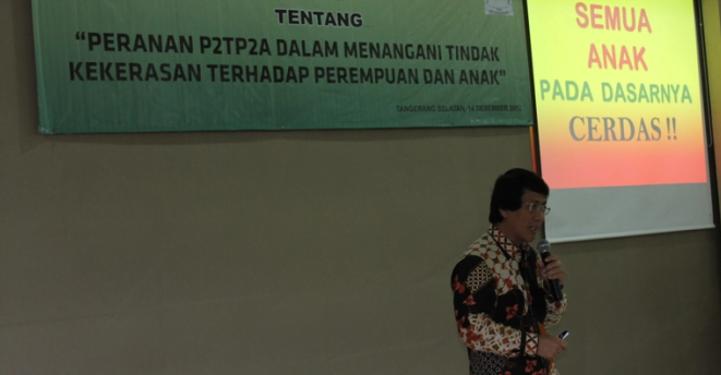 “Kita mencoba memberikan perlindungan bagi perempuan dan anak di Tangsel. Apalagi kekerasan terhadap perempuan dan anak di Tangsel tergolong tinggi,” ungkap Walikota Airin Rachmi Diany, saat membuka Sosialisasi P2TP2A dengan tema. “Peran P2TP2A Dalam Menangani Tindak Kekerasan Terhadap Perempuan dan Anak di Eka Hospital BSD Kecamatan Serpong, Jum’at, 14 Desember 2012.
