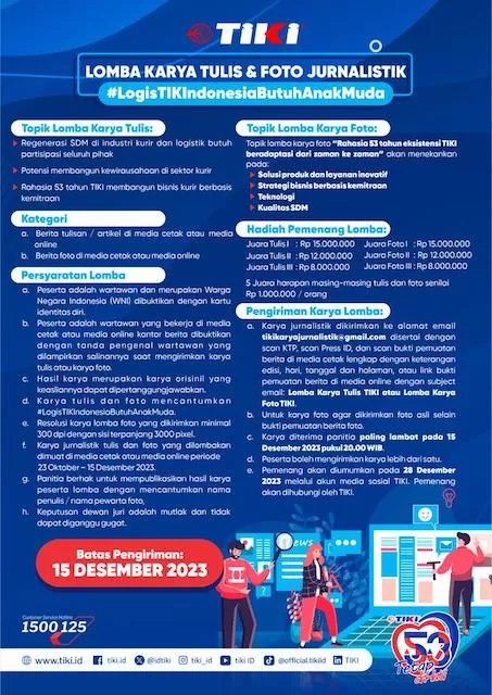 Menginjak usia ke-53 tahun, PT Citra Van Titipan Kilat (TIKI)mengapresiasi peran media massa dalam membantu komunikasi perusahaan, dengan menyelenggarakan Lomba Karya Tulis dan Karya Foto Jurnalistik bertajuk#LogisTIKIndonesiaButuhAnakMuda”.