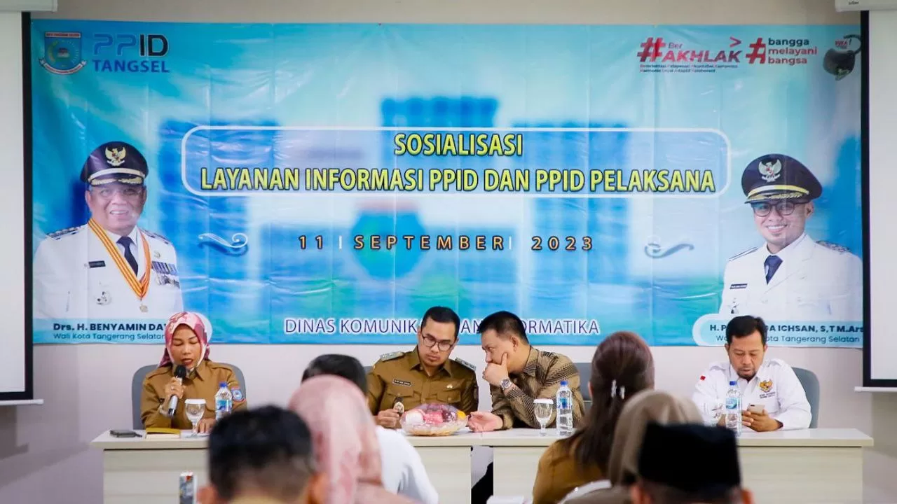 Pemerintah Kota Tangerang Selatan melalui Dinas Komunikasi dan Informatika (Diskominfo) melakukan Sosialisasi Layanan Informasi Pejabat Pengelola Informasi dan Dokumentasi (PPID) dan PPID Pelaksana yang bertempat di Aula Ruang Rapat Gedung 3, Puspemkot Tangsel, pada Senin (11/09).