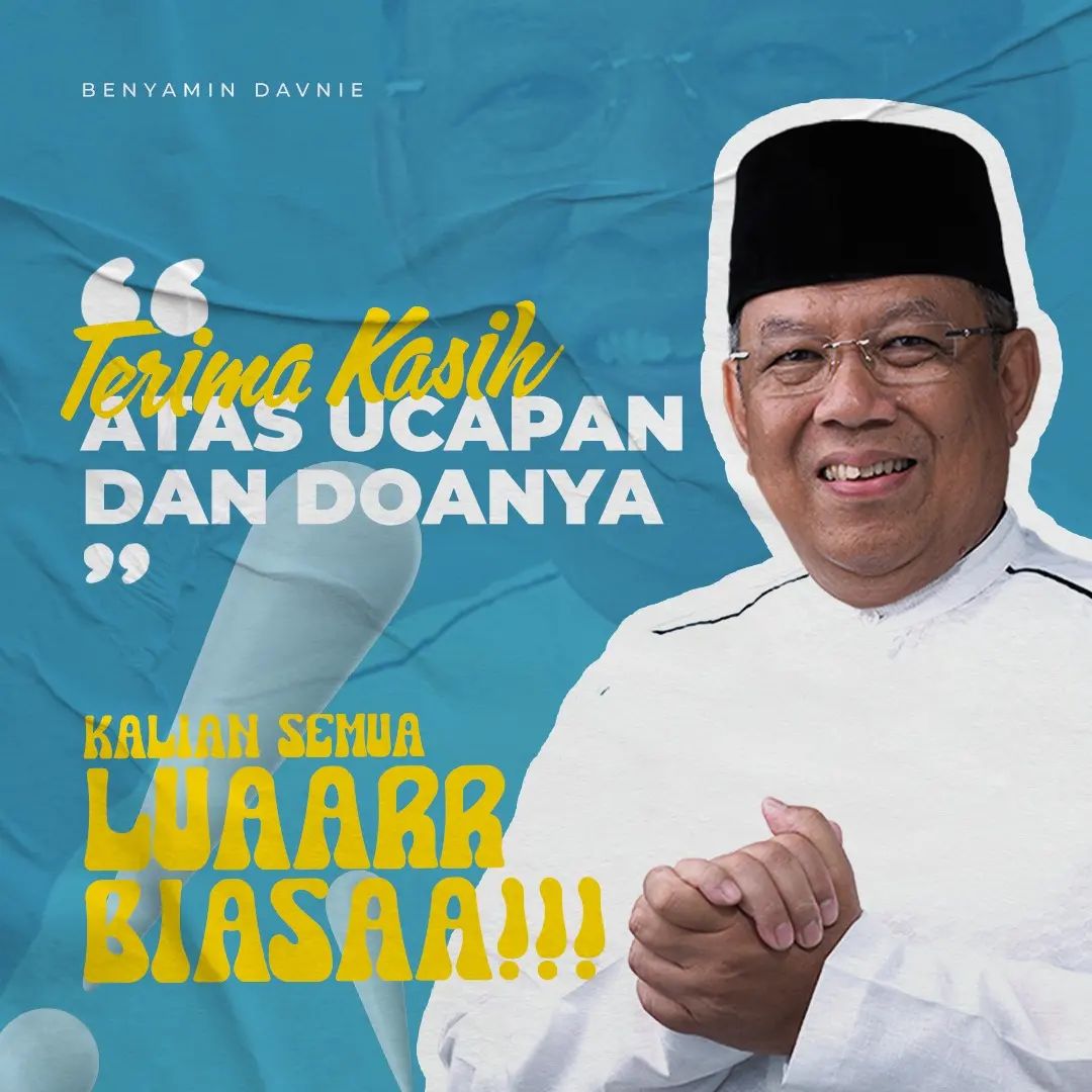 “Masya allah, alhamdulillah. Hanya rasa syukur yang dapat saya ucapkan kepada sang khalik atas semuanya, dan saya hanya bisa haturkan terima kasih untuk setiap doa yang tersematkan pada hari ini, semoga setiap doa yang baik untuk saya dan keluarga, terbaik juga untuk semua.. aamiin allahuma aamiin,” tulis Benyamin Davnie melalui akun instagramnya.