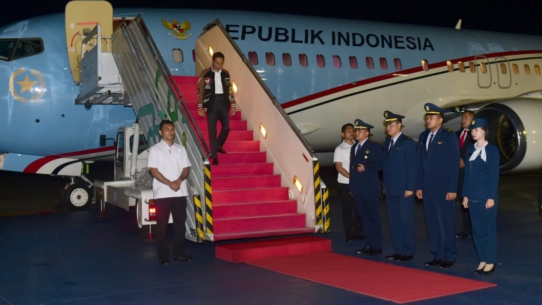 Setelah menempuh penerbangan selama 8 jam dari Terminal Kepresidenan Bandara Internasional Abu Dhabi, Persatuan Emirat Arab, Pesawat Kepresidenan Indonesia-1 yang membawa Presiden Joko Widodo dan rombongan tiba di Pangkalan TNI AU Halim Perdanakusuma Jakarta pada Selasa, 14 Januari 2020, pukul 00.43 WIB.