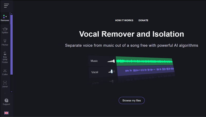 X-minus.Pro adalah vocal remover berbasis web yang menggunakan AI untuk memisahkan vokal dari instrumen. Kesederhanaan dan kecepatannya menjadikannya pilihan utama bagi para penggemar karaoke dan pengguna kasual. Alat ini mendukung berbagai format dan model AI sambil memberikan pemrosesan audio yang andal untuk berbagai jenis file.