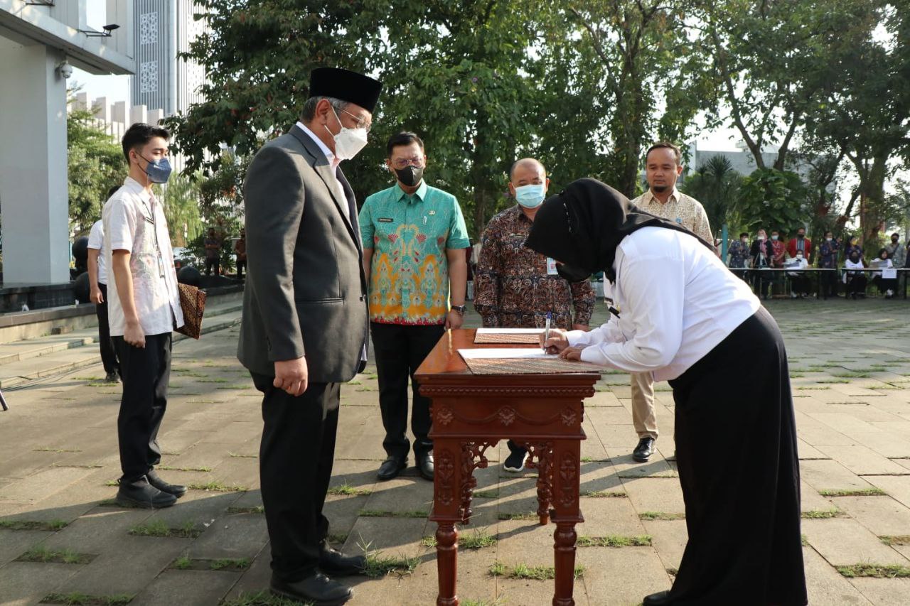 Wali Kota Tangerang Selatan (Tangsel) Benyamin Davnie melantik 648 PPPK (Pegawai Pemerintah dengan Perjanjian Kerja) Guru. Pelantikan itu dilakukan di halaman Puspemkot Tangsel, Ciputat, Kamis (30/6).