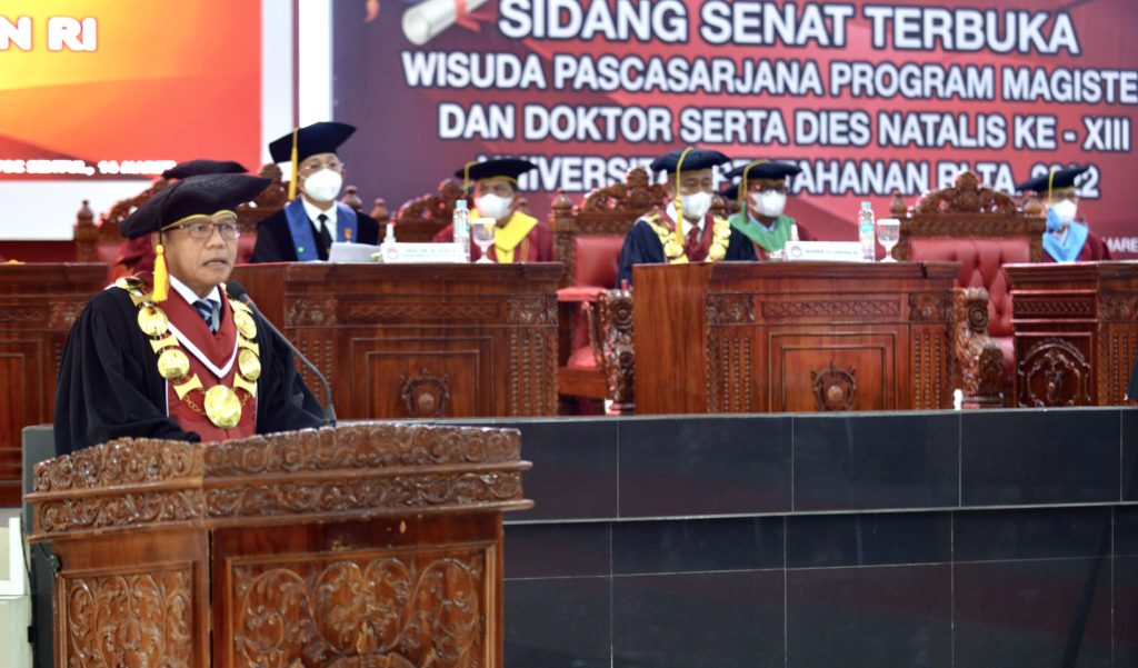 Demikian sambutan Menteri Pertahanan RI Prabowo Subianto yang dibacakan oleh Wakil Menteri Pertahanan RI M. Herindra saat menghadiri Sidang Senat Terbuka Wisuda Program Magister (S-2) dan Doktoral (S-3) Unhan RI dan Dies Natalis Unhan RI Ke-13 Tahun Anggaran 2022 yang dipimpin oleh Rektor Unhan RI Laksdya TNI Amarulla Octavian yang dilaksanakan secara daring dan luring di Aula Merah Putih Unhan RI, Kawasan IPSC Sentul, Jawa Barat.