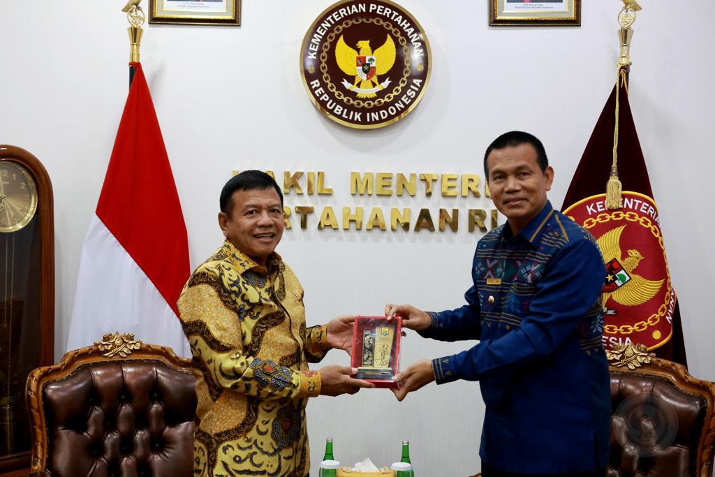 Jakarta – Wakil Menteri Pertahanan (Wamenhan) M. Herindra didampingi Sesditjen Kuathan Kemhan Brigjen TNI Jimmy Alexander Adirman, menerima kunjungan Walikota Pariaman Dr. Genius Umar S.Sos, M.Si., beserta jajarannya di Kementerian Pertahanan, Jakarta, Jumat (14/10).