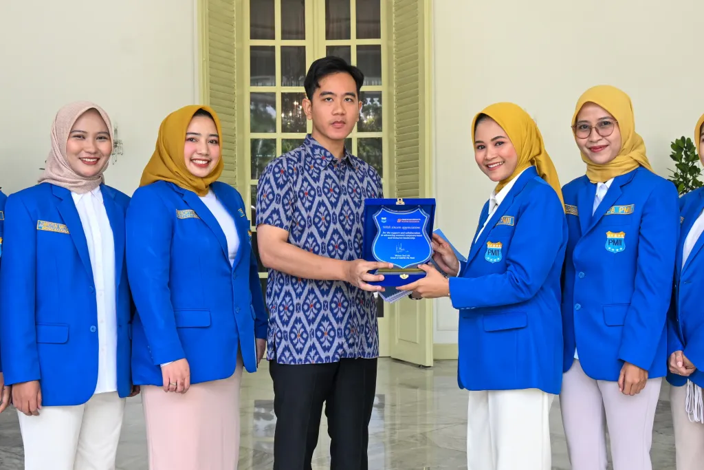 Wakil Presiden (Wapres) Gibran Rakabuming menerima 16 mahasiswi Pengurus Harian Korps Pergerakan Mahasiswa Islam Indonesia Putri (KOPRI) PB PMII) di Istana Wakil Presiden, Jakarta, Senin (05/01/2026). Pertemuan tersebut membahas penguatan peran perempuan dan anak muda dalam pembangunan nasional, sejalan dengan kebijakan pemerintah serta Asta Cita Presiden Prabowo Subianto.